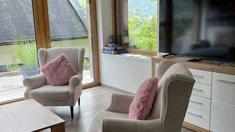 Die Ferienwohnung verfügt über ein Schlafzimmer, ein Wohnzimmer und eine gut ausgestattete Küche. Zur weiteren Ausstattung gehören ein Satelliten-Flachbild-TV sowie ein Badezimmer mit Dusche und Badewanne. Handtücher und Bettwäsche werden bereitgestellt.