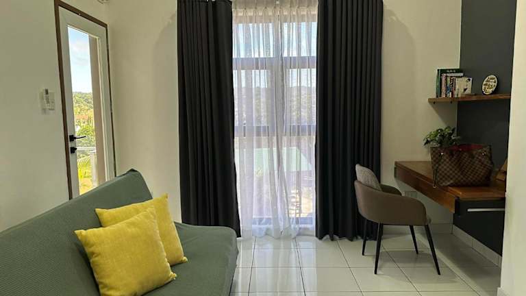 Das Burj Calapan bietet klimatisierte Unterkünfte mit modernen Annehmlichkeiten. Jede Wohneinheit verfügt über eine praktische Küchenzeile, in der Sie Ihre eigenen Mahlzeiten zubereiten können. Das gemütliche Wohnzimmer ist mit einem komfortablen Schlafsofa und einem Flachbild-TV ausgestattet. Im eigenen Badezimmer finden Sie einen Haartrockner und ein Bidet. Der Balkon in jeder Unterkunft bietet einen herrlichen Blick auf die Stadt.