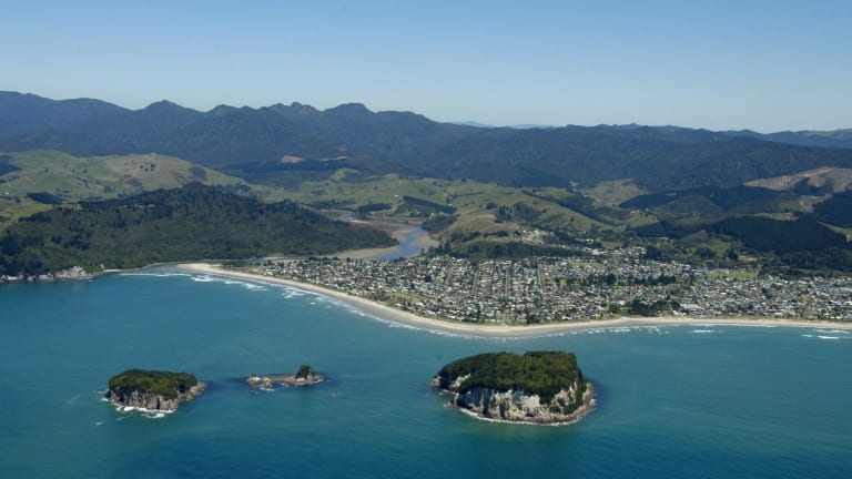 Suedlich 5 km von Whangamata, 8 minuten vom Strand aber mitten im Coromandel Regenwald. Nach dem 18 Loch Golf-Platz des Ortes, rechts in die Wentworth Valley Road, ueber eine River Furt und rechts zu sehen. Am Fusse des Wanderwegs zu den Wasserfaellen.