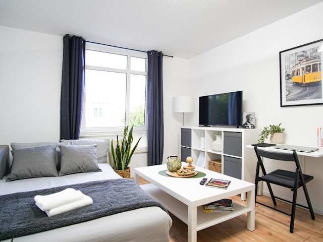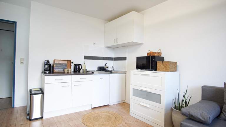 Die Ferienwohnung verfügt über 1 Schlafzimmer und eine voll ausgestattete Küchenzeile mit Kühlschrank und Mikrowelle. Das Badezimmer ist mit einer Dusche und kostenlosen Pflegeprodukten ausgestattet. Handtücher und Bettwäsche werden bereitgestellt.