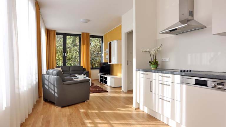 In der Umgebung der Business Suiten gibt es eine große Auswahl an Lebensmittelgeschäften, Cafés und Restaurants. Gäste können die voll ausgestattete Küche in ihrem Apartment nutzen, um ihre eigenen Gerichte zuzubereiten. Dies bietet eine flexible und kostengünstige Verpflegungsoption für die Gäste.
