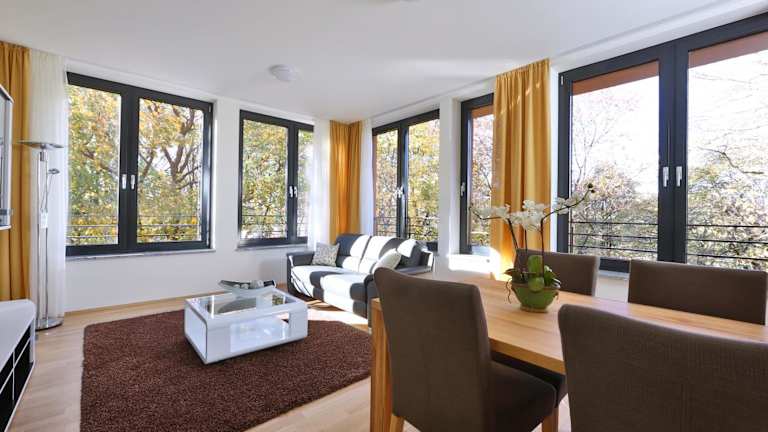 Die Business Suiten befinden sich im Stadtteil Schwabing-West, einer lebhaften Gegend in München. Sie liegen in der Nähe des Münchener Olympiastadions und bieten eine gute Anbindung an öffentliche Verkehrsmittel, um die Stadt zu erkunden. In der Umgebung finden Sie auch eine Vielzahl von Geschäften, Restaurants und Unterhaltungsmöglichkeiten. Die Alte und Neue Pinakothek sowie das BMW Museum und der Englische Garten sind beliebte Sehenswürdigkeiten, die leicht zu erreichen sind.