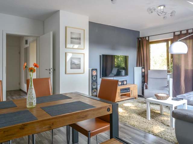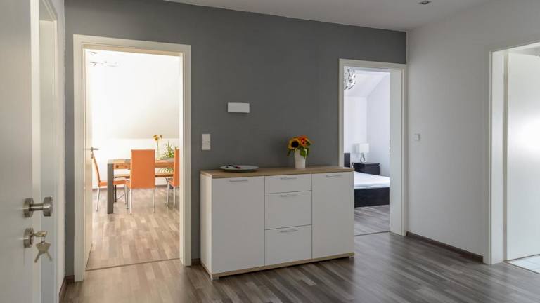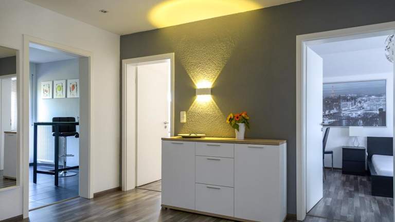 Die Business Wohnung bietet hochwertige Ausstattung und einen Blick auf den Garten. Sie ist eine Ferienwohnung mit zwei Schlafzimmern, einem Wohnzimmer sowie einer voll ausgestatteten Küche.