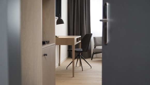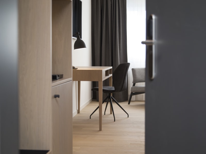 Raum für Träume Ein guter und erholsamer Schlaf ist kein Zufall, sondern das Ergebnis eines richtig guten Schlafsystems. Unser VALEO Schlafsystem bietet eine Lösung für gesunden Schlaf in einem modularen System: Die Hotelmatratze Hochwertigste Materialien – zwei Härtegrade in einer Matratze und die patentierte Liegeergonomie für das beste Schlaferlebnis. Hygiene Alle Matratzenüberzüge sind mit Greenfirst® ausgestattet. Duvet Bei diesem Duvet wird anitbakteriell hoch wirksames Silber auf das Gewebe aufgebracht. Dieses in ionischer Form aufgebrachte Silber wirkt dreifach auf Bakterien. Kissen GREENFIRST® ist eine textile Ausrüstung, die auf Auszügen von pflanzlichen Ölessenzen - vor allem aus Zitrone, Lavendel und Eukalyptus - basiert. Die exklusive Formel verschafft den Textilien hervorragende Eigenschaften gegen Schädlinge, insbesondere gegen Staubmilben, Motten und Mücken. Also ideal für Allergiker! Gute Nacht Paket auf Ihrem Nachttisch Wir wollen Ihre Nacht so angenehm wie möglich gestalten. Dafür stellen wir Ihnen Alles, was Sie benötigen: Augenmaske, Schlaf-Spray mit ätherischen Ölen, Abdeckungsmöglichkeit aller klitzekleinen Lichtquellen im Zimmer, Ohropax und einen beruhigenden Entspannungstee. Austattung: Kaffee und Teestation | Smart TV| Induktives Laden am Schreibtisch | Yogamatte | Regendusche | Fön | Kosmetikartikel | Minibar | Laptopsafe | Telefon | grosser Schreibtisch