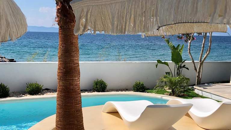 Byblos Aqua-The Sea Front Luxury Villa bietet eine Unterkunft mit einer Gemeinschaftslounge, Klimaanlage, einem eigenen Pool, einem Garten und einem kostenlosen Privatparkplatz.