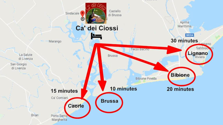 Die Unterkunft Ca dei Ciossi befindet sich in Concordia Sagittaria, weniger als 17 km vom Museum für Meeresarchäologie Caorle und 18 km vom Wasserpark Aquafollie entfernt. Der Dom Santo Stefano von Caorle ist 19 km entfernt, während Madonna dell'Angelo 19 km und Parco Zoo Punta Verde 26 km entfernt liegt. Der nächstgelegene Flughafen ist der Flughafen Treviso, 66 km von der Unterkunft entfernt.