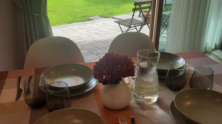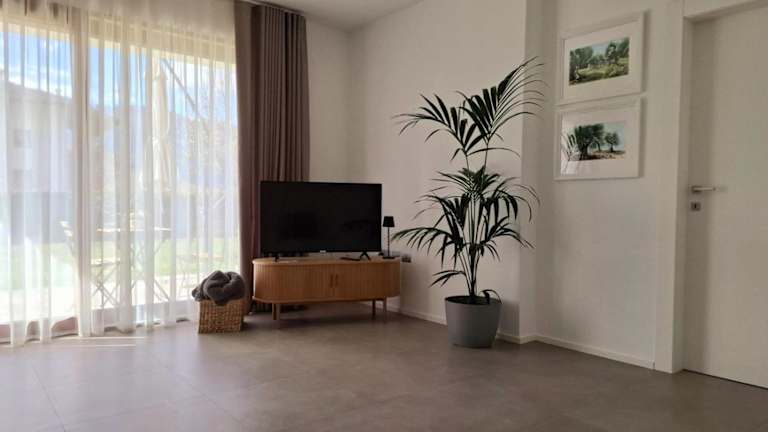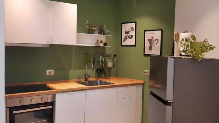 Die Ferienwohnung besteht aus einem Schlafzimmer, einem Wohnzimmer, einer voll ausgestatteten Küche mit Kühlschrank und Kaffeemaschine sowie einem Badezimmer mit Bidet und Dusche. Handtücher und Bettwäsche werden bereitgestellt.
