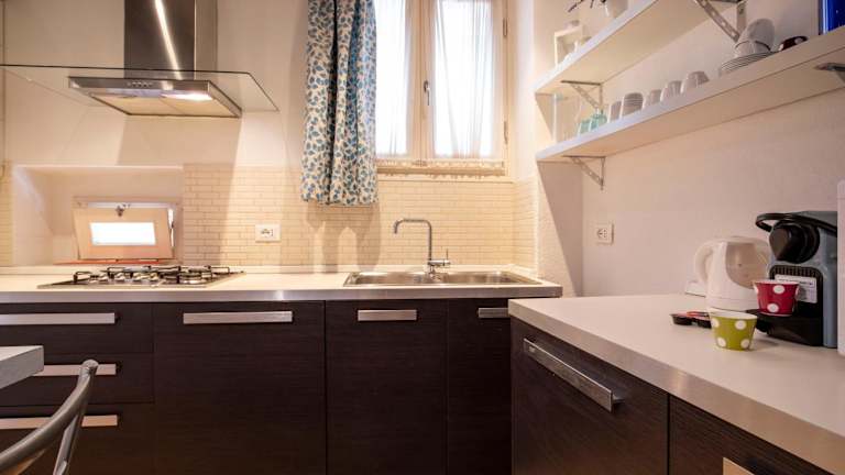 Die Unterkunft verfügt über eine voll ausgestattete Küche mit Kühlschrank und Kaffeemaschine, was Selbstverpflegung ermöglicht.