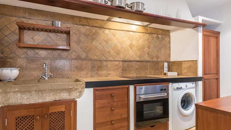 Das Ferienhaus verfügt über zwei Schlafzimmer, ein Wohnzimmer, eine voll ausgestattete Küche mit Kühlschrank und Kaffeemaschine sowie zwei Badezimmer mit Dusche und Haartrockner. Für den Komfort der Gäste werden Handtücher und Bettwäsche bereitgestellt.