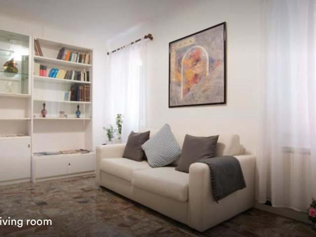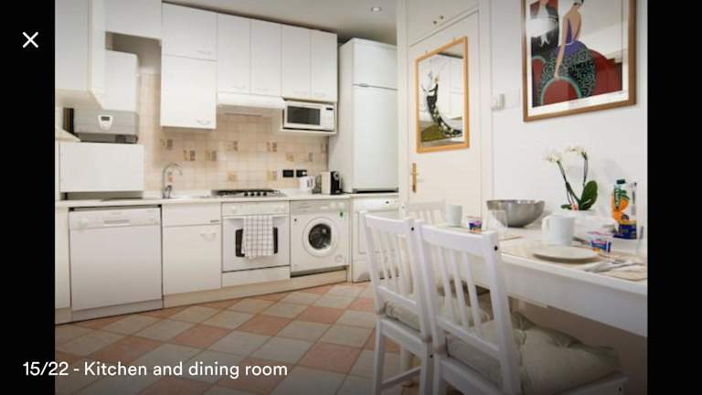 Die Ferienwohnung besteht aus einem Schlafzimmer, einem Wohnzimmer und einer voll ausgestatteten Küche, die mit einem Kühlschrank und einer Kaffeemaschine ausgestattet ist. Zudem stehen ein Badezimmer mit Bidet und Dusche sowie Handtücher und Bettwäsche zur Verfügung.