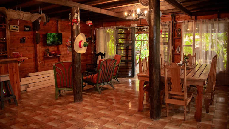 Cabaña Ave Del Paraiso bietet kostenloses WLAN, eine Bar und einen Garten. Den Gästen stehen zudem kostenlose Privatparkplätze zur Verfügung. Die Unterkunft umfasst ein Chalet mit drei Schlafzimmern, die Aussicht auf den Fluss und den Garten bieten.