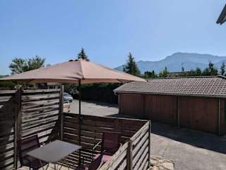 Die Cabana & Studio Alpin Annecy - Terrasse Parking bietet eine Ferienwohnung mit einer Terrasse. Gäste können sich auf kostenfreies WLAN und einen schönen Blick auf die Berge freuen. Ein kostenloser Privatparkplatz steht zur Verfügung. Die Unterkunft ist als Nichtraucherunterkunft ausgewiesen.
