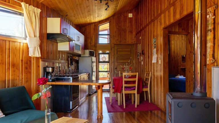 Neben den komfortablen Unterkünften bietet das Cabañas Entre Verdes auch einen schönen Garten, in dem Sie sich entspannen können. Nutzen Sie die Grillmöglichkeiten, um ein BBQ mit Ihren Lieben zu genießen. In der Umgebung gibt es viele Möglichkeiten für Outdoor-Aktivitäten wie Wandern, Radfahren und Wassersport. Das freundliche Personal steht Ihnen gerne zur Verfügung und kann Ihnen bei der Organisation von Aktivitäten und Ausflügen in der Umgebung behilflich sein.