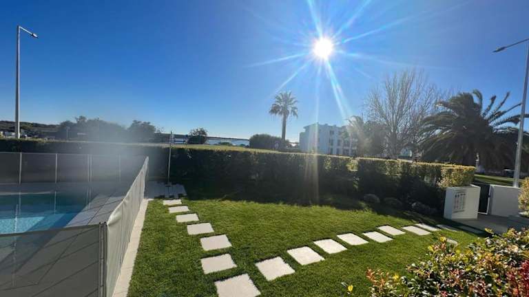 Das Apartment verfügt über einen eigenen Pool und einen Garten, in dem Sie sich entspannen und die Sonne genießen können. Die Nähe zum Strand bietet außerdem zahlreiche Möglichkeiten für Wassersport und andere Freizeitaktivitäten.