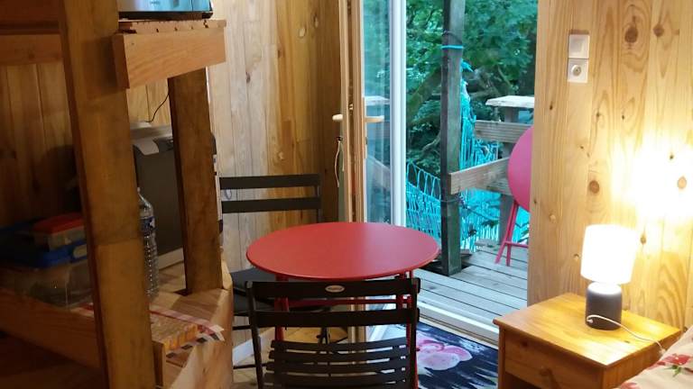 Das Cabane dans les Arbres - Tree House bietet ein einziges Zimmer mit einer gemütlichen Atmosphäre. Das Zimmer ist mit einer Kochnische ausgestattet, die einen Kühlschrank und eine Herdplatte enthält. WLAN steht Ihnen kostenlos zur Verfügung.