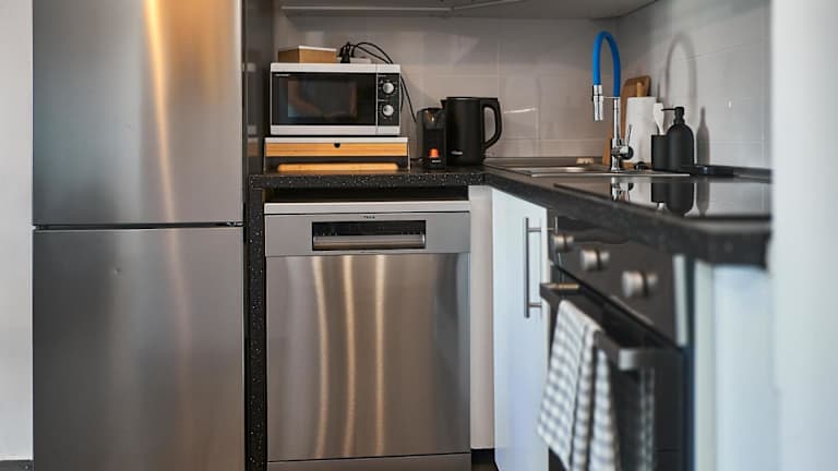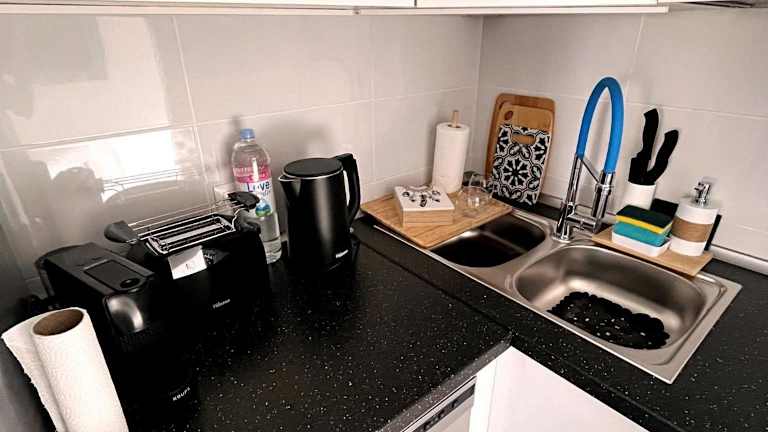 In der Unterkunft steht eine voll ausgestattete Küchenzeile zur Verfügung, die Annehmlichkeiten wie einen Kühlschrank, Geschirrspüler, Waschmaschine, Ofen und Mikrowelle bietet. Es werden Handtücher und Bettwäsche bereitgestellt.