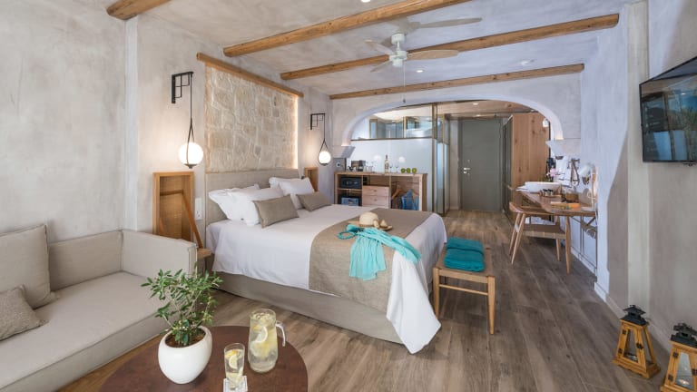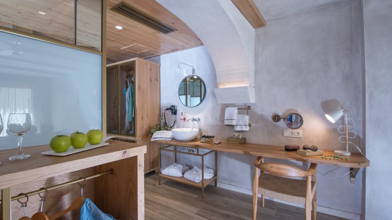 Doppel Superior Das angenehm kühle Design der Anlage spiegelt sich auch in den Zimmern wieder. Die luftig leicht gestalteten Räume vereinen traditionelle Elemente mit modernem Design. Sie verfügen über Walk-In Dusche/WC, Föhn, Badannehmlichkeiten, Bademäntel, Slipper, Telefon, individuell regulierbare Klimaanlage, Safe (kostenlos), 40'' Flatscreen TV, Minibar (bei den Doppelzimmern kostenlos gefüllt bei Ankunft, danach gegen Bezahlung) Wi-Fi, Kaffee-/Teezubereiter (tägliche Auffüllung), Nespresso Maschine (2 Kapseln pro Tag inklusive), Kissenmenü sowie Balkon oder Terrasse (DSU). Bei Ankunft eine Flasche Wein und eine Flasche Wasser im Zimmer ( die Wasserstationen, um bei Bedarf die Wasserflaschen frisch aufzu-füllen, finden Sie an zentralen Stellen des Hotels) . Wahlweise mit seitlichem Meerblick , zur Alleinbenutzung , mit direktem Meerblick , mit Sharing Pool und Gartenblick, sowie mit Jacuzzi buchbar. Suiten Bieten bei gleicher Ausstattung wie die Doppelzimmer Superior mehr Platz und eine separate Sitzecke mit Sofa . Wahlweise auch buchbar mit Sharingpool (im Annex). Die Minibar wird bei den Suiten, Zimmern mit privatem oder sharing Pool und Jacuzzi, alle 2 Tage kostenlos nachgefüllt.