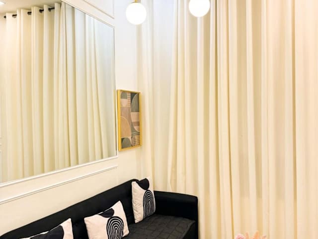 Die Ferienwohnung beinhaltet zwei Schlafzimmer, ein Wohnzimmer und ein Badezimmer. Zur Ausstattung gehören Klimaanlage sowie Handtücher und Bettwäsche. Zudem handelt es sich um eine Nichtraucherunterkunft.