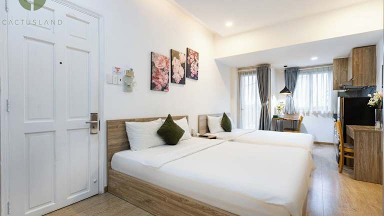 Das Cactusland Hotel & Apartment befindet sich in Ho-Chi-Minh-Stadt, genauer gesagt in der Nguyen Van Troi Street, Phu Nhuan Distrikt. Die Unterkunft liegt in der Nähe des Tan-Dinh-Markts (2,9 km) und des Kriegsopfermuseums (3,7 km). Der Flughafen Tan-Son-Nhat ist etwa 3 km entfernt und ein kostenpflichtiger Flughafentransfer wird angeboten.