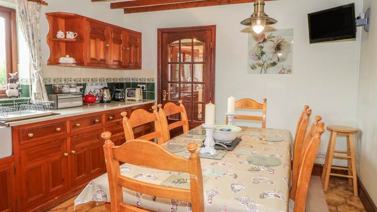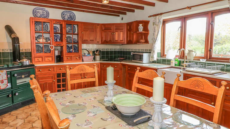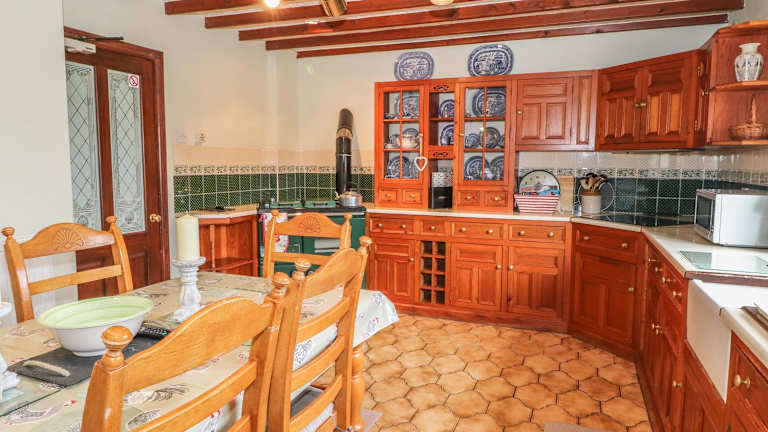Die Unterkunft Cae Glas verfügt über eine Küche, die mit einem Kühlschrank und einem Geschirrspüler ausgestattet ist, um Selbstversorgern eine angenehme Erfahrung zu bieten.