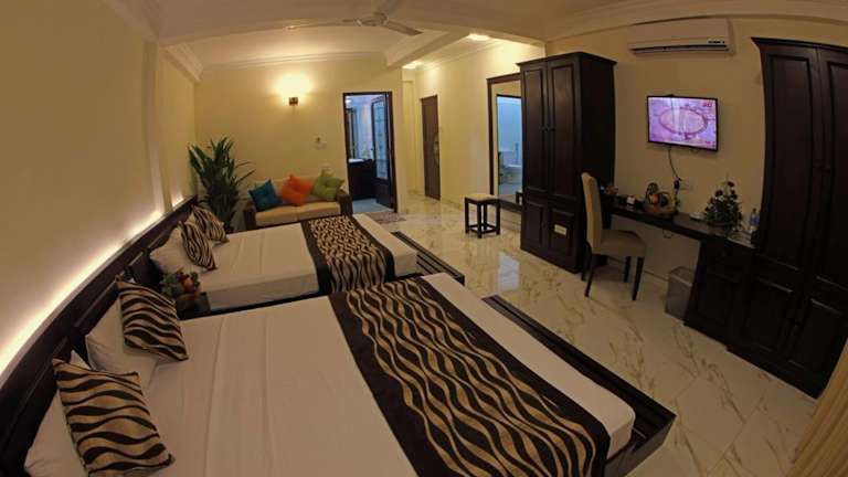 Die Zimmer im Café Aroma Inn sind gut ausgestattet und verfügen über Klimaanlage und ein eigenes Badezimmer. Die Zimmer sind mit Marmorböden, einem Frisiertisch, einem Kleiderschrank und einem Flachbild-Kabel-TV ausgestattet. Die Badezimmer sind mit Blumen dekoriert und bieten einen separaten Duschbereich. Hier können Sie sich nach einem langen Tag entspannen und erfrischen.