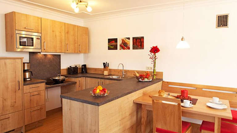 Die Wohneinheiten sind mit einer Küche und einem Essbereich ausgestattet. Ein eigenes Badezimmer mit Haartrockner und Dusche ist ebenfalls vorhanden.