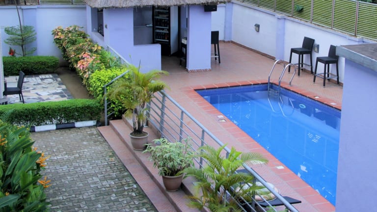 Das Calabar Harbour Resort SPA in Calabar ist ein modernes Hotel mit 17 klimatisierten Zimmern und zahlreichen Freizeiteinrichtungen wie einem Außenpool und Fitnessmöglichkeiten. Das Hotel bietet kostenloses WLAN und einen Concierge-Service. Genießen Sie kulinarische Köstlichkeiten im hoteleigenen Restaurant oder entspannen Sie bei einem Drink an der Bar oder Poolbar. Das Hotel verfügt über eine 24-Stunden-Rezeption und kostenlose Parkplätze. Die Zimmer sind komfortabel eingerichtet und mit allen Annehmlichkeiten ausgestattet, darunter kostenloses WLAN und Satellitenfernsehen. Das Hotel befindet sich in der Nähe von Sehenswürdigkeiten wie dem Nationalarchiv von Nigeria und dem U.J. Esuene Stadium.