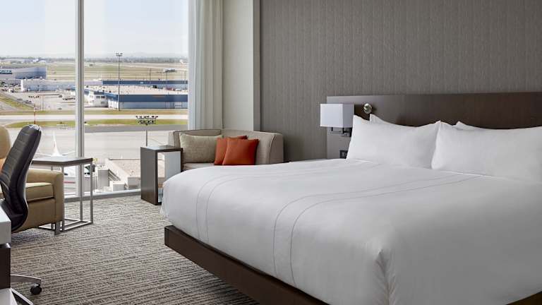 Das Calgary Airport Marriott In-Terminal Hotel liegt direkt am Calgary International Airport und ist etwa 19 km vom Stadtzentrum entfernt. Es bietet eine günstige Lage am Rande der Stadt mit Restaurants und Geschäften in der Nähe.
