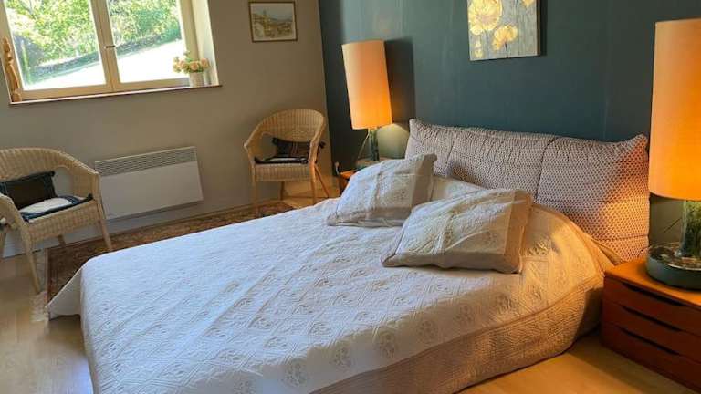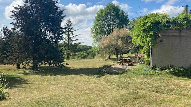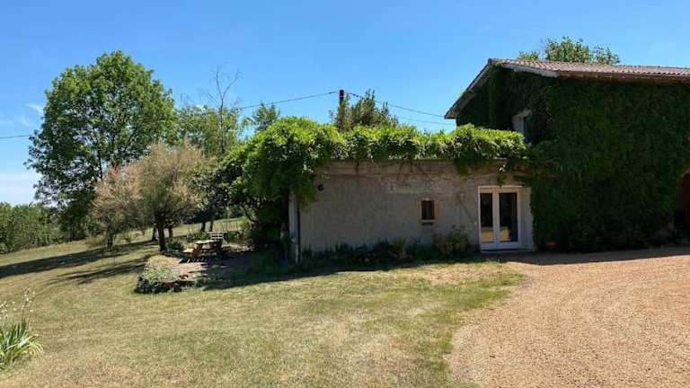 Calme et tranquillité à la campagne ist eine Ferienhausunterkunft umgeben von einem Garten, die Ruhe und eine entspannte Atmosphäre bietet. Die Unterkunft ist für Gäste geeignet, die einen Rückzugsort in der Natur suchen.