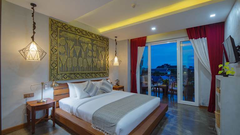 Das Cambana Residence in Siem Reap bietet elegante Unterkünfte mit kostenfreiem WLAN. Das Hotel verfügt über ein Khmer-Restaurant und einen Außenpool. Die Zimmer sind mit traditionellem khmerischem Mobiliar ausgestattet und bieten Annehmlichkeiten wie einen Flachbild-Sat-TV, einen Safe und eine Minibar. Im eigenen Bad finden Sie eine separate Dusche und einen Whirlpool im Freien. Das Hotel bietet auch einen Wellnessbereich mit Massageangeboten und eine 24-Stunden-Rezeption. Ein Restaurant und eine Bar sind ebenfalls vorhanden. Das Hotel befindet sich in günstiger Lage, nur 1 km vom Angkor National Museum und 1,5 km von der Pub Street entfernt.