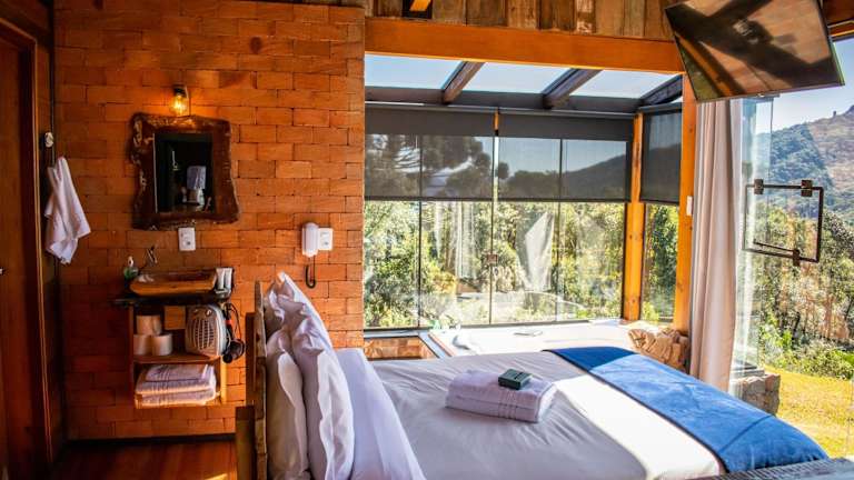 Caminho das Nuvens - Cabanas de Montanha ist eine Unterkunft, die verschiedene Annehmlichkeiten wie ein Restaurant, Zimmerservice, eine Bar sowie einen Garten und eine Sonnenterrasse bereitstellt. Für Entspannung sorgt ein Whirlpool, und Grillmöglichkeiten sind ebenfalls vorhanden.