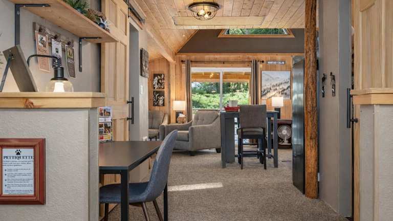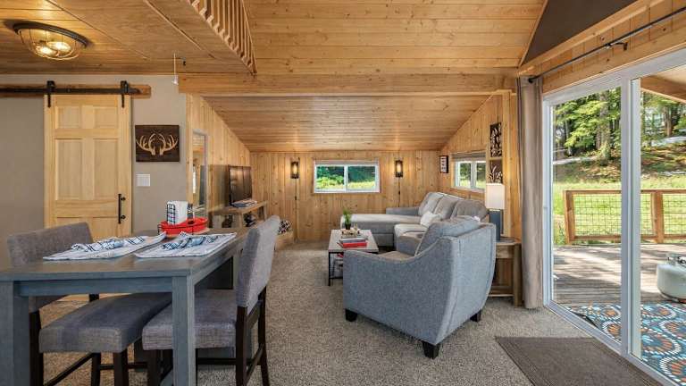 Camp David by NW Comfy Cabins ist ein Ferienhaus, das klimatisierte Übernachtungsmöglichkeiten anbietet. Es verfügt über eine Veranda oder einen Patio sowie kostenloses WLAN und bietet Parkmöglichkeiten auf einem Privatparkplatz.