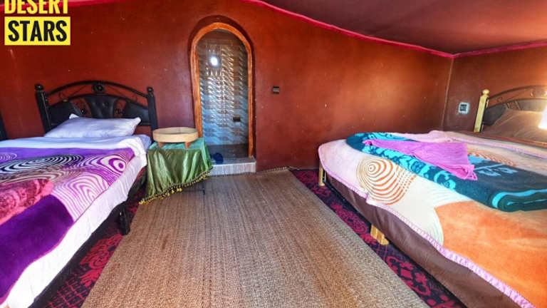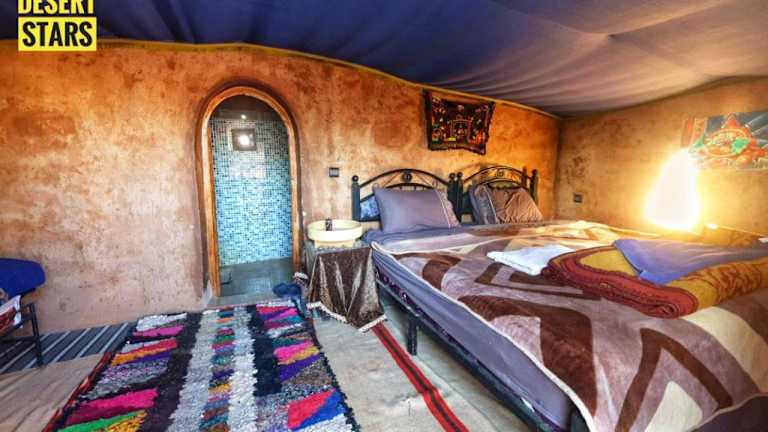 Das Camp Desert Stars bietet eine Vielzahl von Unterkunftsmöglichkeiten, darunter Zelte, die im traditionellen marokkanischen Stil eingerichtet sind. Jedes Zelt ist komfortabel und gemütlich eingerichtet und verfügt über alle Annehmlichkeiten, die Sie für einen angenehmen Aufenthalt benötigen. Kostenfreies WLAN steht zur Verfügung, damit Sie mit Ihren Lieben in Kontakt bleiben können.