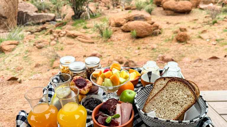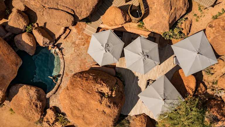Das Camp Kipwe in Twyfelfontein ist ein einzigartiges Resort, das Ihnen eine entspannte und komfortable Unterkunft inmitten der atemberaubenden Landschaft von Damaraland bietet. Genießen Sie den Außenpool, das Restaurant und die Bar sowie kostenfreies WLAN. Besuchen Sie den versteinerten Wald Khorixas, der nur 40 km entfernt liegt, oder erkunden Sie das nahegelegene Twyfelfontein. Die Zimmer sind klimatisiert und mit allen notwendigen Annehmlichkeiten ausgestattet. Starten Sie Ihren Tag mit einem köstlichen kontinentalen Frühstück.