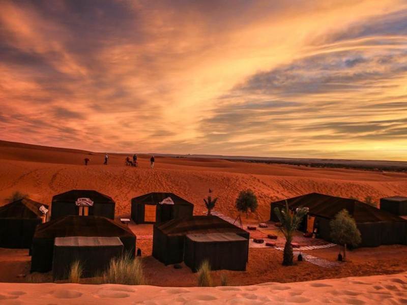 Die Unterkünfte im Camp Sahara Holidays sind geräumig und verfügen über einen gemütlichen Sitzbereich und einen Essbereich. Hier können Sie sich entspannen und die Ruhe der Wüste genießen. WLAN steht Ihnen in allen Bereichen kostenlos zur Verfügung.