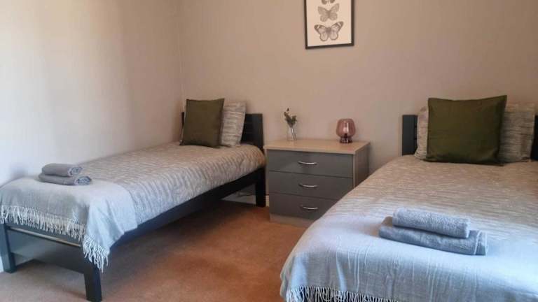 Die Ferienwohnung verfügt über 2 Schlafzimmer, eine gut ausgestattete Küche mit Kühlschrank und Ofen sowie ein Badezimmer mit Dusche.
