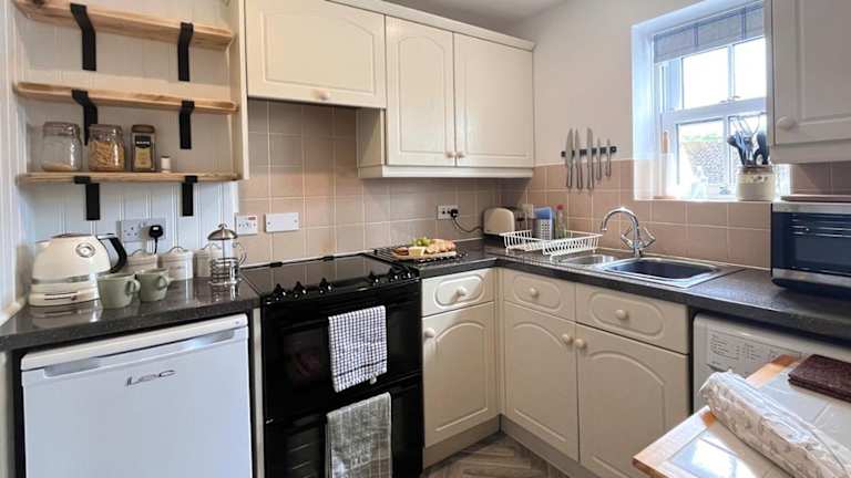 Das Ferienhaus verfügt über eine gut ausgestattete Küche mit einem Kühlschrank, einem Backofen und einer Mikrowelle. Das gemütliche Wohnzimmer bietet einen komfortablen Sitzbereich und einen Essbereich. Es gibt zwei Schlafzimmer und ein Badezimmer mit Dusche und Badewanne. Handtücher und Bettwäsche werden gestellt, um Ihren Aufenthalt so angenehm wie möglich zu gestalten.