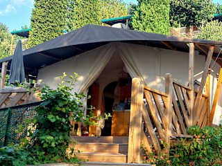 Der Campingplatz bietet einen saisonalen Außenpool, in dem Sie sich erfrischen und unter der Sonne entspannen können. Ein Kinderspielplatz steht den kleinen Gästen zur Verfügung, damit sie sich austoben und neue Freunde finden können. Genießen Sie die natürliche Umgebung und erkunden Sie die Umgebung bei Wanderungen oder Fahrradtouren.