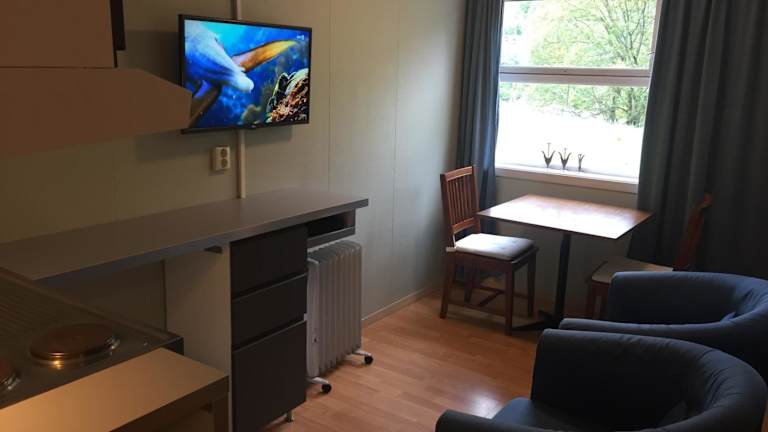 Das hoteleigene Café im Kyrping Camping serviert während der Hochsaison leichte Gerichte, Bier und Wein. Sie können Ihre Mahlzeiten auf der Terrasse des Cafés genießen und den atemberaubenden Blick auf den Fjord dabei genießen. Während der Hochsaison steht Ihnen in der Lobby ein Minimarkt zur Verfügung, in dem Sie Lebensmittel kaufen können.