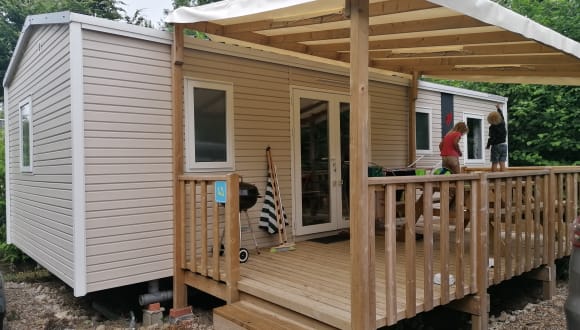 Alle Unterkünfte im Campingplatz Le Val de Trie sind zur Selbstverpflegung und bieten Ihnen eine Terrasse, farbenfrohe Zimmer und einen Essbereich. Jede Unterkunft verfügt über ein eigenes Badezimmer mit Dusche. Die Unterkünfte sind komfortabel und bieten Ihnen alles, was Sie für einen angenehmen Aufenthalt benötigen.