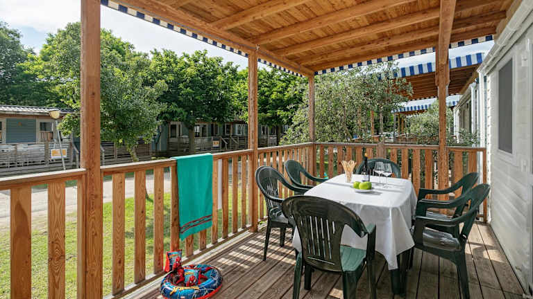 Die Mobilheime auf dem Campingplatz Albatross Mobile Homes on Camping Cisano & San Vito S.p.A. sind komplett eingerichtet und bieten allen Komfort, den Sie für einen angenehmen Aufenthalt benötigen. Jedes Mobilheim verfügt über eine voll ausgestattete Küche, in der Sie Ihre eigenen Mahlzeiten zubereiten können. Auf der möblierten Terrasse können Sie die warmen Sonnenstrahlen genießen und sich entspannen.