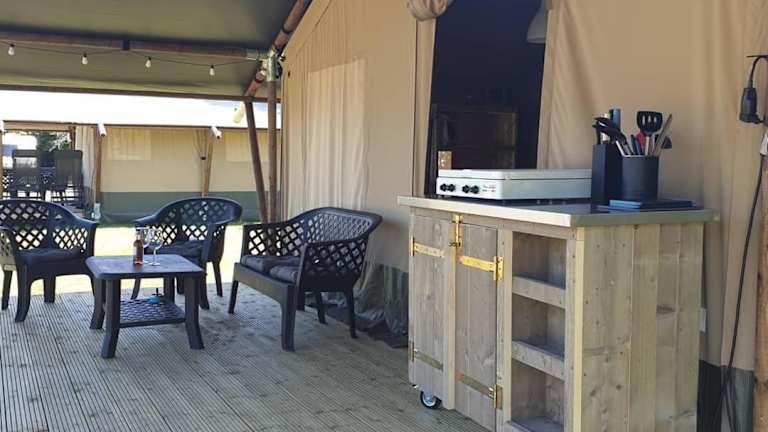 Im Camping Eefting gibt es kein eigenes Restaurant, aber Sie können Ihre eigenen Mahlzeiten in der voll ausgestatteten Küchenzeile zubereiten. Es gibt auch Restaurants in der Nähe, in denen Sie lokale Spezialitäten probieren können.
