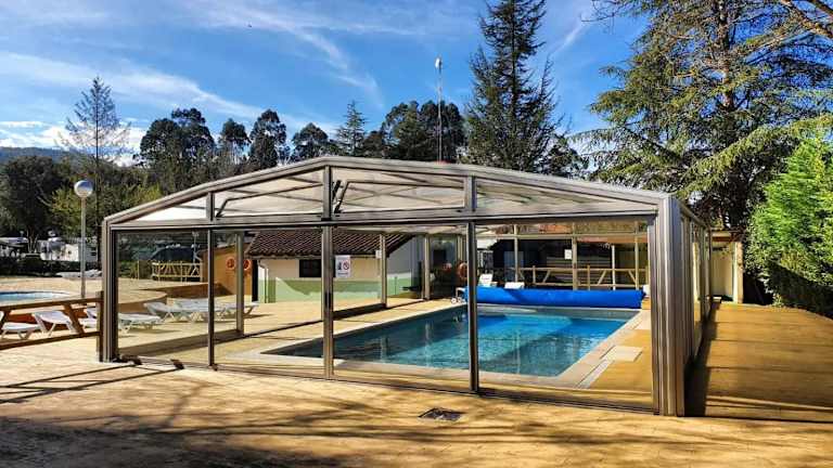 Camping El Helguero in Kantabrien bietet Holzbungalows mit eigenem Bad und gut ausgestatteten Küchenzeilen. Zum Campingplatz gehören ein Außenpool, ein Kinderspielplatz und ein Restaurant. Die Bungalows verfügen über einen Wohn-/Essbereich, eine möblierte Veranda mit Gartenblick sowie einen Parkplatz.