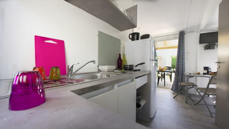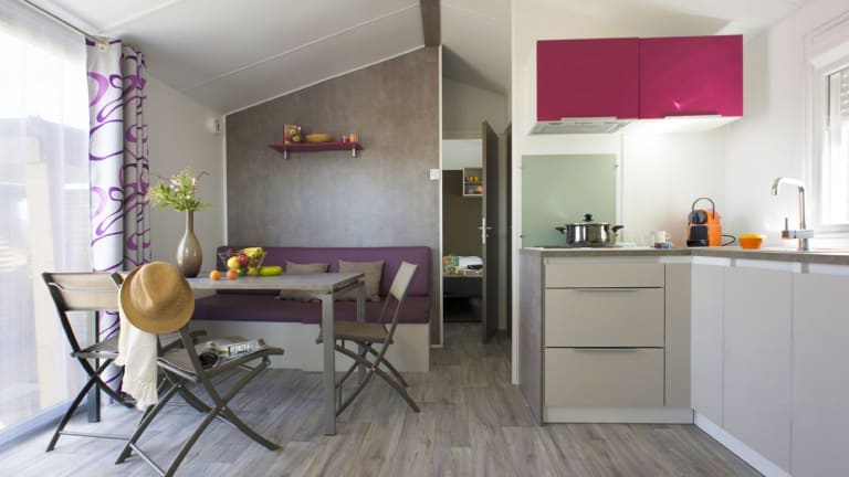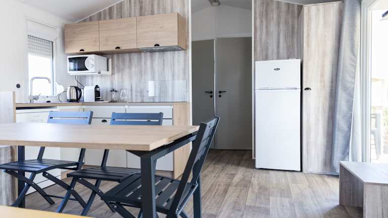 Die Mobilheime im Camping Emeraude sind komfortabel eingerichtet und bieten alles, was Sie für einen angenehmen Aufenthalt benötigen. Jedes Mobilheim verfügt über eine möblierte Terrasse, einen Ess-/Sitzbereich und ein eigenes Badezimmer. Eine voll ausgestattete Küchenzeile ermöglicht es Ihnen, Ihre eigenen Mahlzeiten zuzubereiten, und WLAN steht gegen einen Aufpreis zur Verfügung.