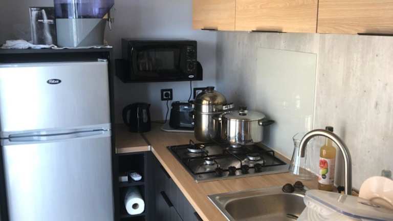 Die Zimmer des Camping le Castellas sind mit einem Sitzbereich, einem Flachbild-TV sowie einer voll ausgestatteten Küche mit Kühlschrank, Ofen, Mikrowelle, Herdplatte und Toaster ausgestattet. Zudem sind eine Kaffeemaschine, ein Wasserkocher und ein eigenes Badezimmer mit Dusche vorhanden.