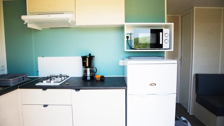 Die Unterkünfte im Camping les Chênes bieten einen gemütlichen Sitzbereich und teilweise eine Terrasse. Ein Kühlschrank und eine Kaffeemaschine sind ebenfalls vorhanden. Einige Unterkünfte verfügen sogar über eine voll ausgestattete Küche mit Backofen.