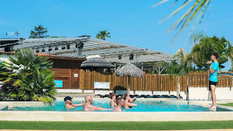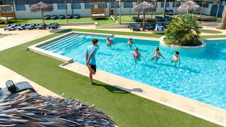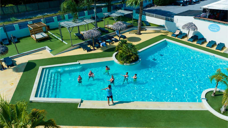 Der Campingplatz Le Pearl**** bietet einen beheizten Wasserpark mit Pool, Ruhebereich und Wasserrutschen. Hier können Sie sich entspannen und Spaß haben. Es gibt auch einen Kinderspielplatz für die kleinen Gäste. Animationen und Unterhaltung werden das ganze Jahr über angeboten, und es gibt einen kostenlosen Kinderclub an französischen Feiertagen.