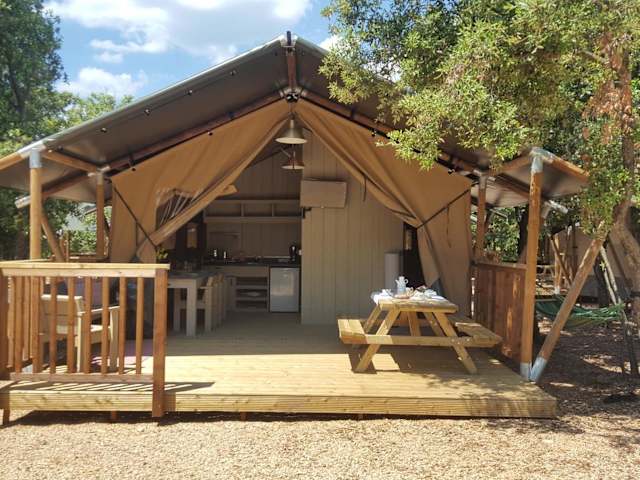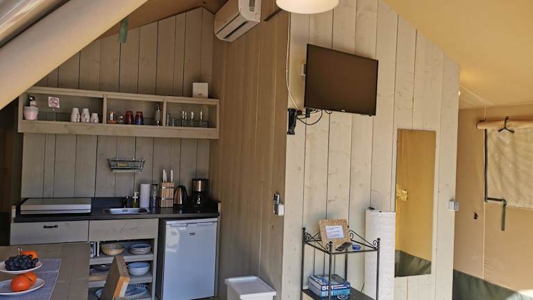 Die Zelt-Lodges sind mit einem Balkon ausgestattet und verfügen über einen Flachbild-TV sowie eine kleine Küche mit Kühlschrank, Herdplatte und Toaster. Badewäsche sowie kostenlose Pflegeprodukte sind vorhanden. Die Unterkünfte sind klimatisiert und es gibt Nichtraucherzimmer.