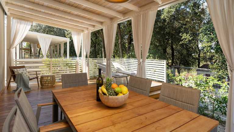 Im Camping Resort Tina Vrsar erwarten Sie klimatisierte Mobilheime mit einer Terrasse. Die Mobilheime sind komfortabel eingerichtet und verfügen über einen Flachbild-Sat-TV, eine Küchenzeile mit einer Mikrowelle, einem Wasserkocher und einem Essbereich. Das eigene Bad ist mit einer Dusche ausgestattet. Kostenfreies WLAN und Bettwäsche werden zur Verfügung gestellt, um Ihnen einen angenehmen Aufenthalt zu ermöglichen.