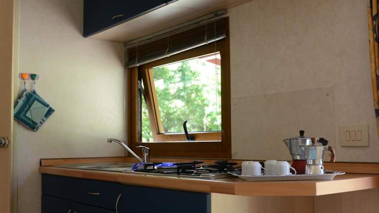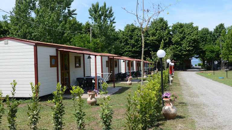 Die Mobilheime im Camping Vigna di Valle sind gemütlich und gut ausgestattet. Jedes Mobilheim verfügt über einen eigenen Terrassenbereich, auf dem Sie die frische Luft und die Ruhe der Umgebung genießen können. Im Inneren finden Sie einen komfortablen Sitzbereich und eine Küchenzeile mit einem Kühlschrank und Küchenutensilien. Das eigene Bad ist mit einer Dusche und kostenfreien Pflegeprodukten ausgestattet.
